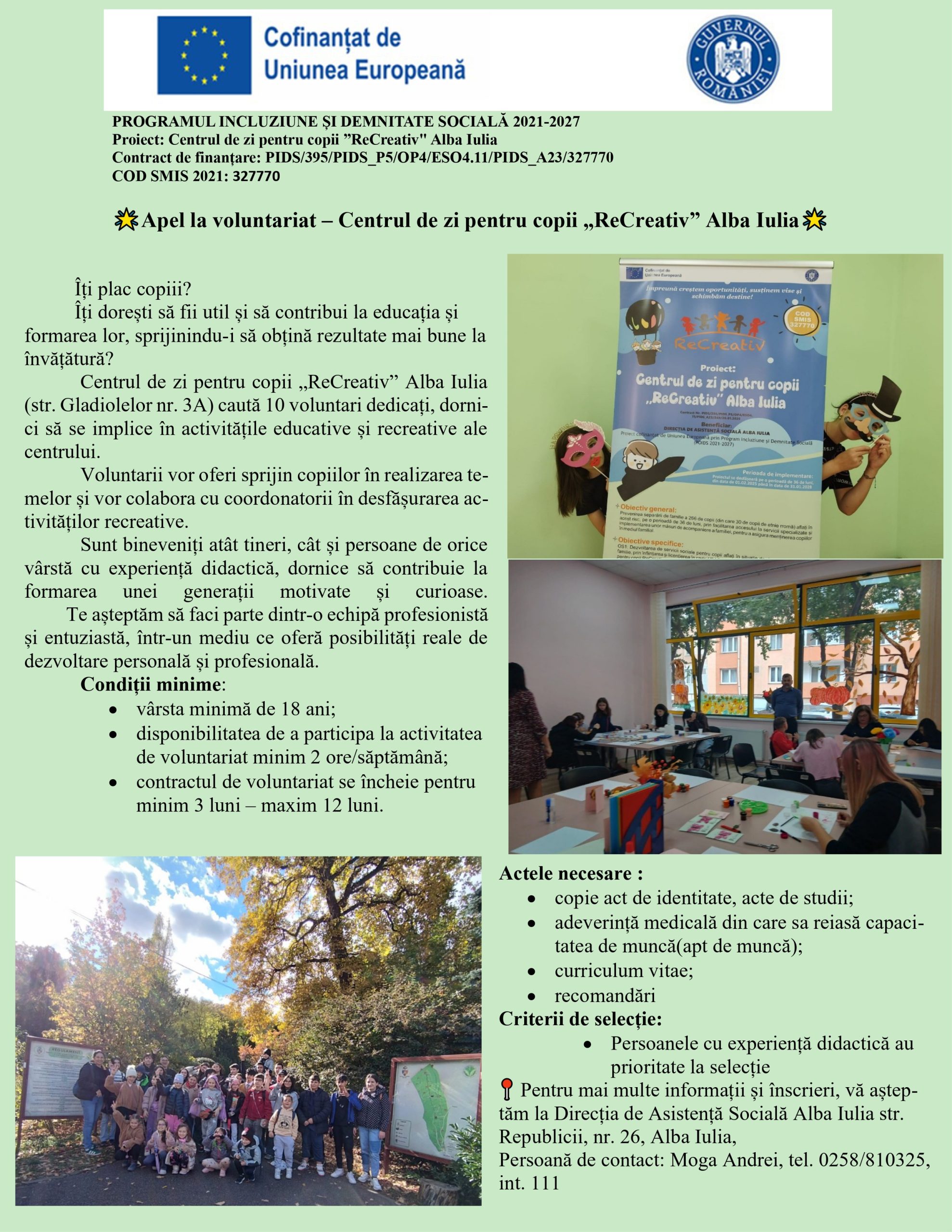 Noutăți 🌟Apel la voluntariat – Centrul de zi pentru copii „ReCreativ” Alba Iulia 05/11/2025 Vezi anunț în format PDF Continue Reading Previous ANUNȚ – Ajutor pentru încălzirea locuinței și suplimentul pentru energie sezonul 2025-2026 V-ar putea interesa și: Noutăți ANUNȚ – Ajutor pentru încălzirea locuinței și suplimentul pentru energie sezonul 2025-2026 24/10/2025 Noutăți ANUNȚ – TICHETE DE ENERGIE 22/08/2025 Noutăți RECOMANDĂRI ÎN CAZ DE CANICULĂ: 23/06/2025